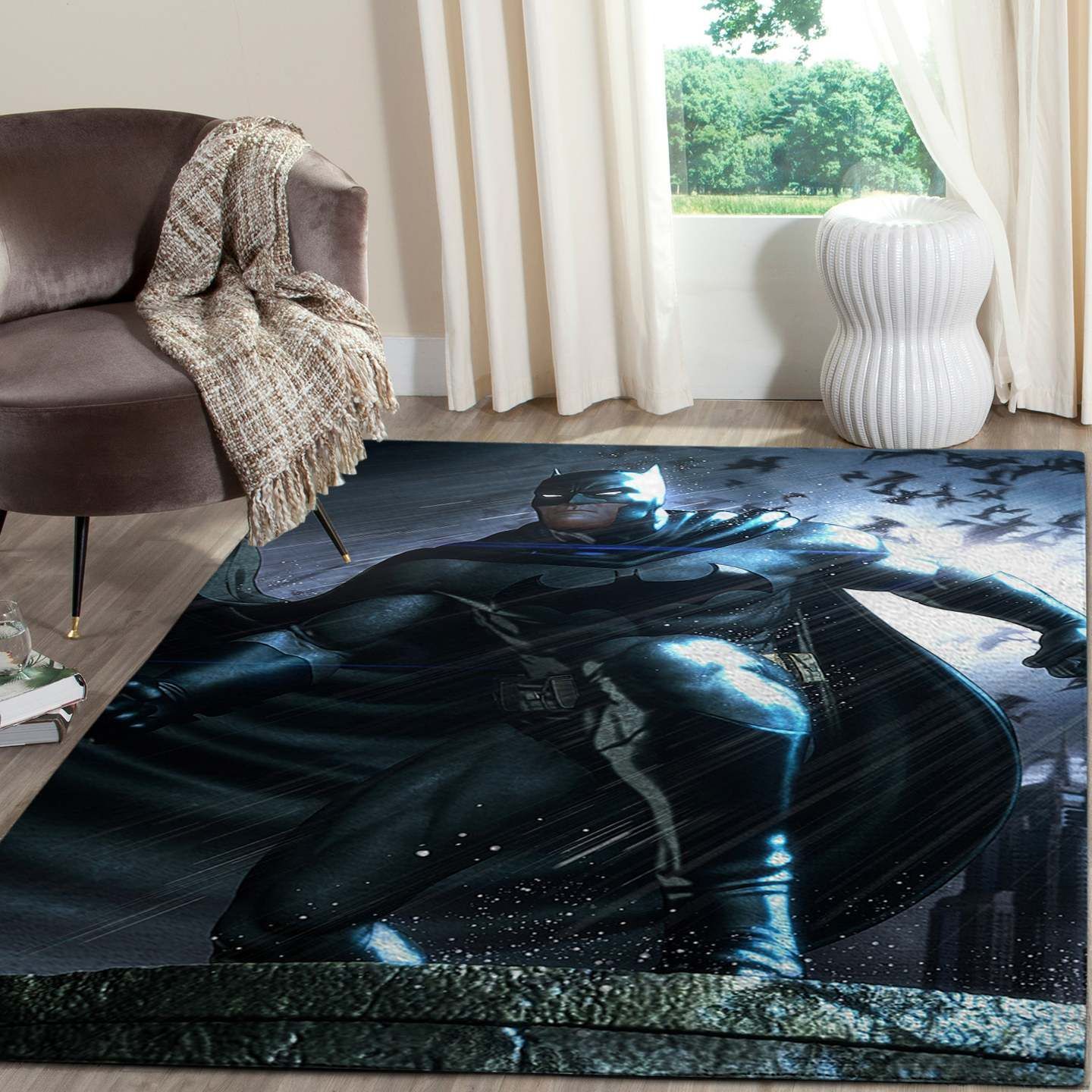 Black and Blue Superhero Themed Rug for Living Room Decor