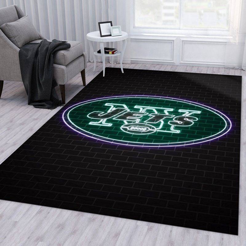 Show off your New York Jets pride every time someone steps through the door with the Black and green Jets themed area rug for living room decor! Designed for both sophistication and comfort, this luxurious rug features age-inspired, piece-dyed designs that add depth and character. Turn your living space into a cozy sanctuary with this ultimate home essential!