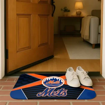Blue and Brown Mets Baseball Design Rug for Living Room Decor