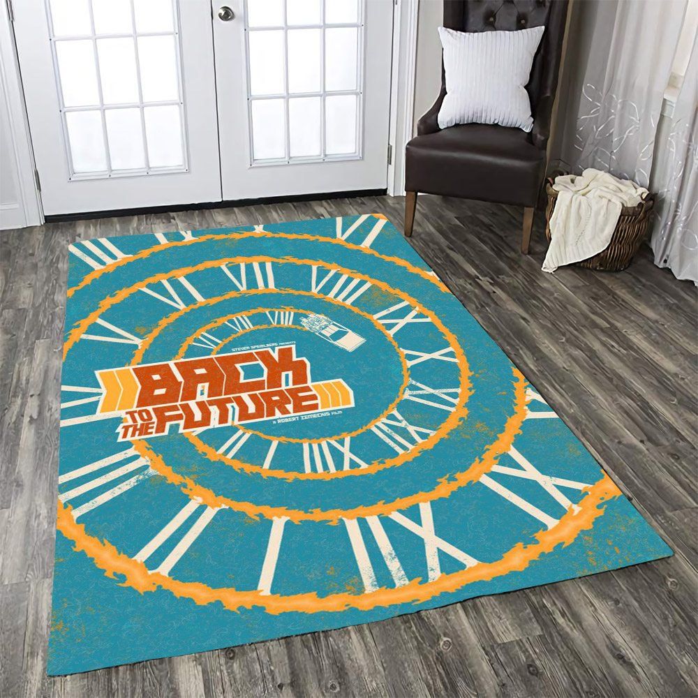 Blue and Orange Back to the Future Clock Spiral Area Rug for Home
