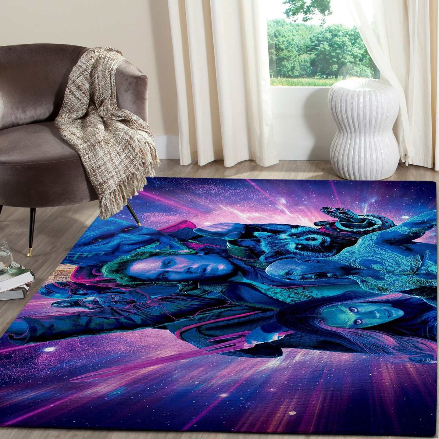 Blue and Purple Space Themed Modern Graphic Area Rug for Living Room