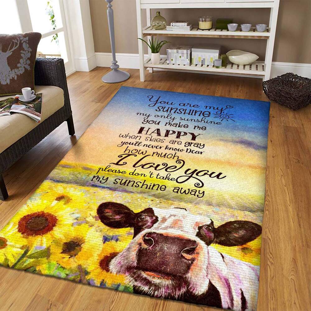 Blue and Yellow Cow and Sunflowers Decorative Area Rug for Home