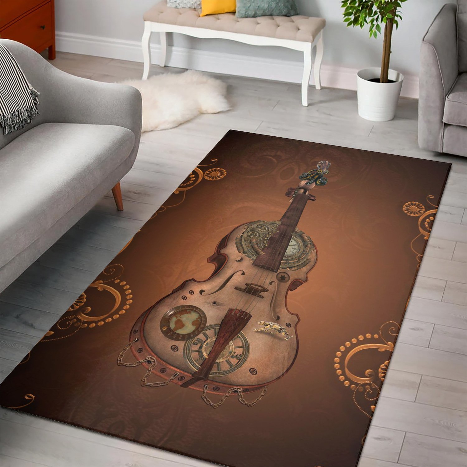 Brown and Beige Vintage Violin Design Area Rug for Living Room