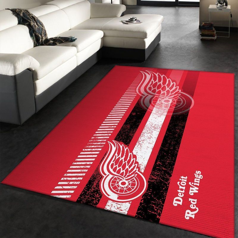 Detroit Red Wings Rug Red White Black Striped Floor Mat for Fans