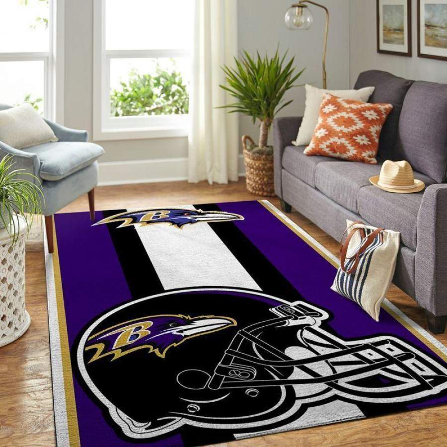 Baltimore Ravens Area Rug Purple and Black Football Helmet Design