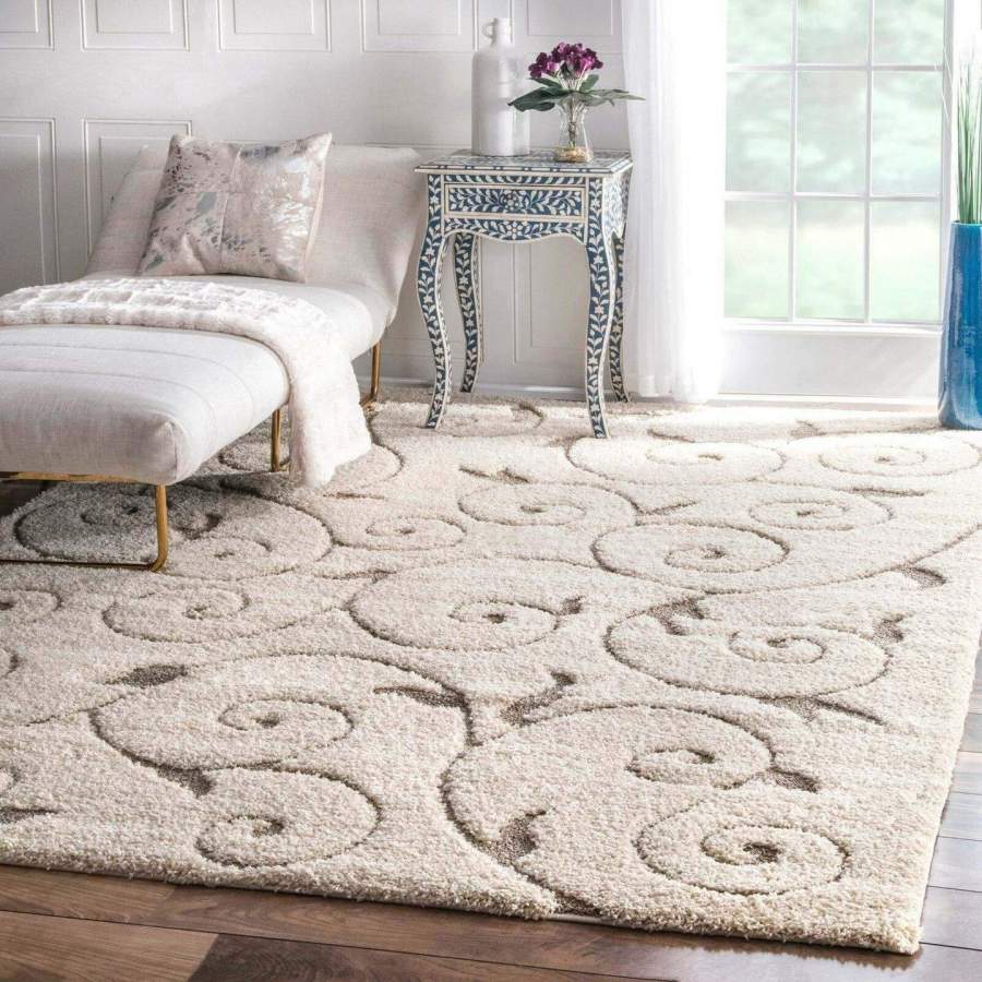 Beige and Brown Plush Swirl Pattern Rug for Cozy Living Room Decor