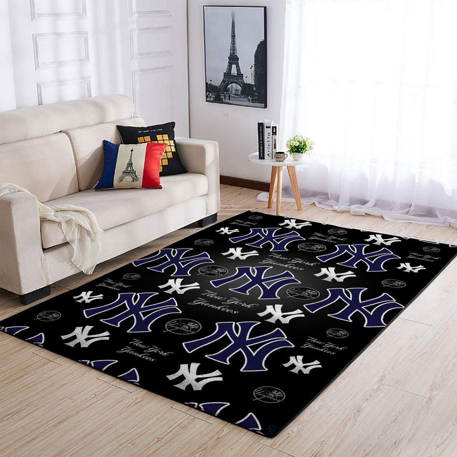 Black and Blue New York Yankees Themed Area Rug for Living Room