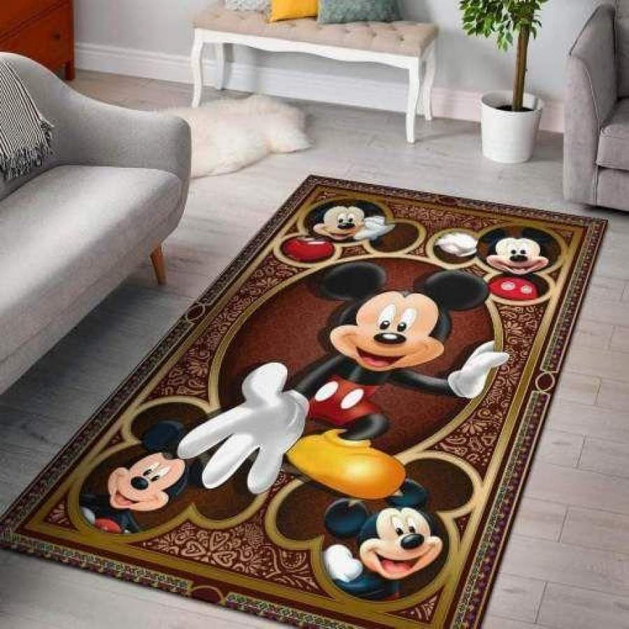 Black and Brown Mickey Mouse Themed Kids Area Rug for Playroom