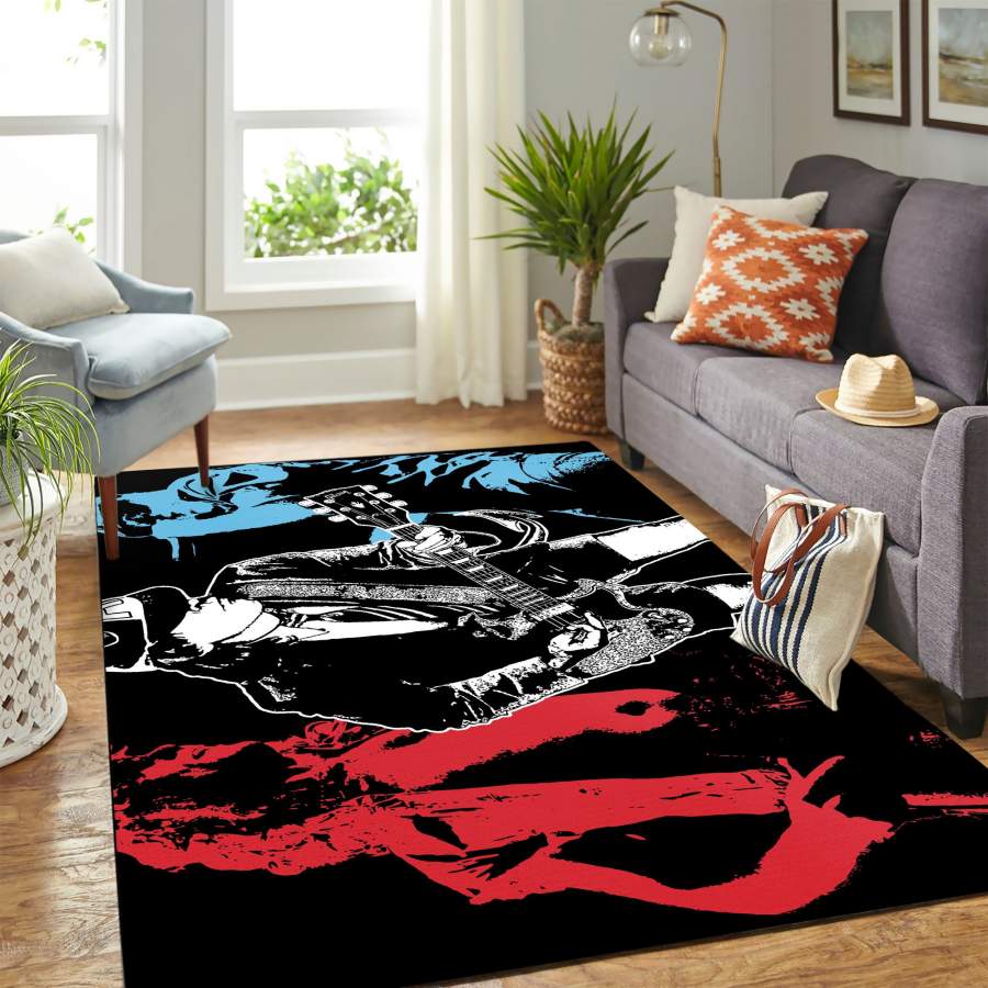 Black and Red Modern Guitarist Art Rug for Living Room Decor