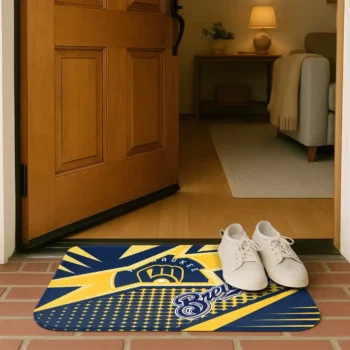 Blue and beige Milwaukee Brewers themed area rug for sports fans