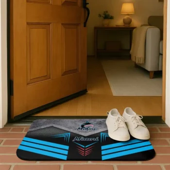 Blue and Black Miami Marlins Baseball Inspired Area Rug for Living Room