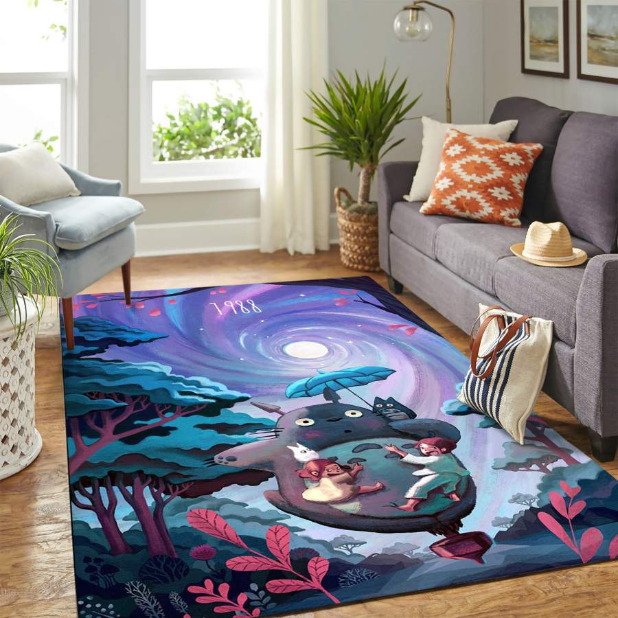Blue and Purple Fantasy Totoro Inspired Kids Rug for Playroom Decor
