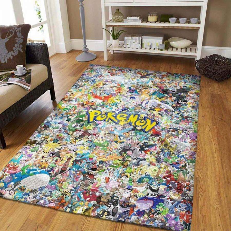 Blue and Yellow Pokemon Themed Rug for Kids and Playroom Decor