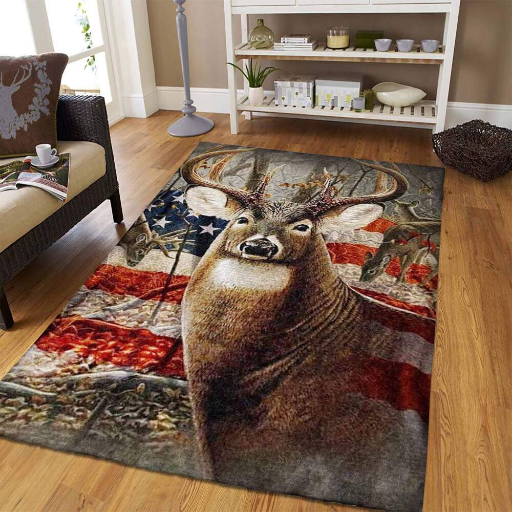 Brown and Red Deer Rug with Patriotic American Flag Design