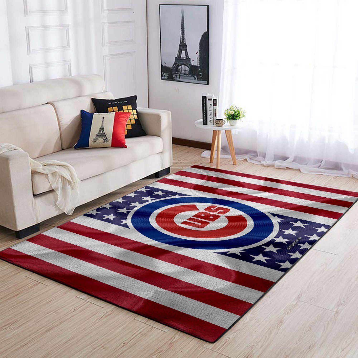 Chicago Cubs Red Blue Striped Area Rug for Living Room Decor