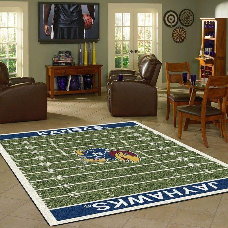 Kansas Jayhawks Green and Blue Football Field Area Rug for Fans