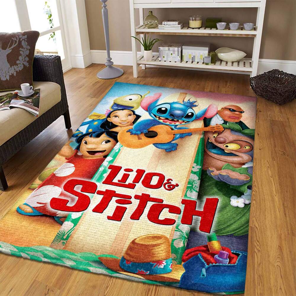 Lilo and Stitch Blue and Red Kids Rug for Playroom Bedroom Decor