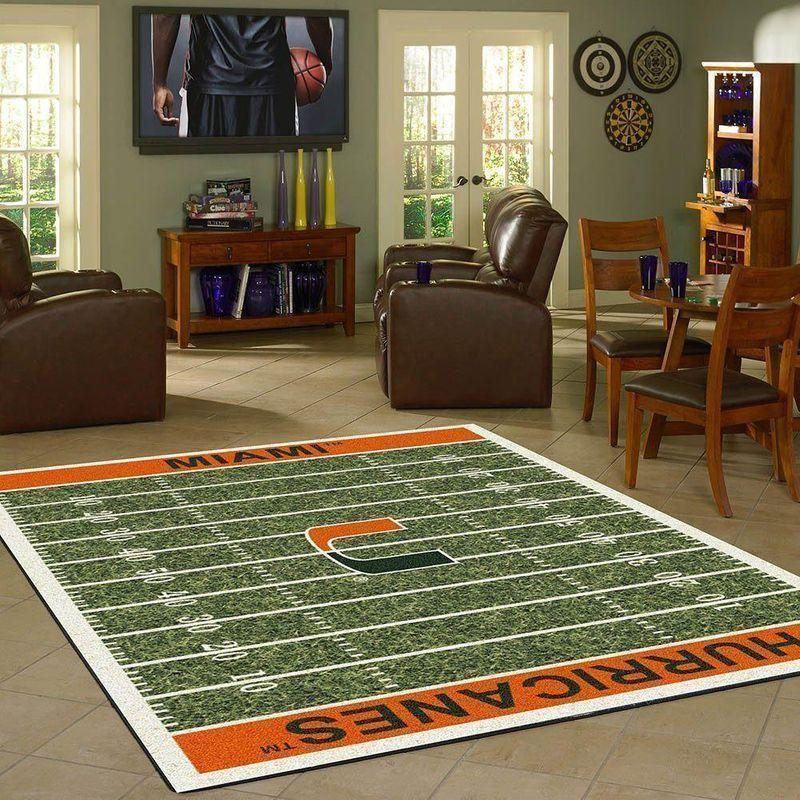 Miami Hurricanes Green and Orange Football Field Area Rug for Home