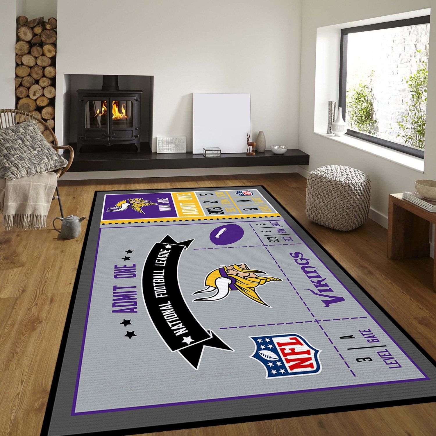 Minnesota Vikings Gray and Purple NFL Ticket Style Area Rug