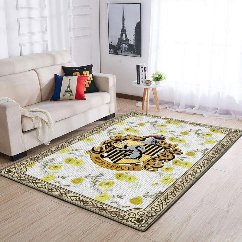 Yellow and White Hufflepuff Themed Decorative Area Rug for Living Room