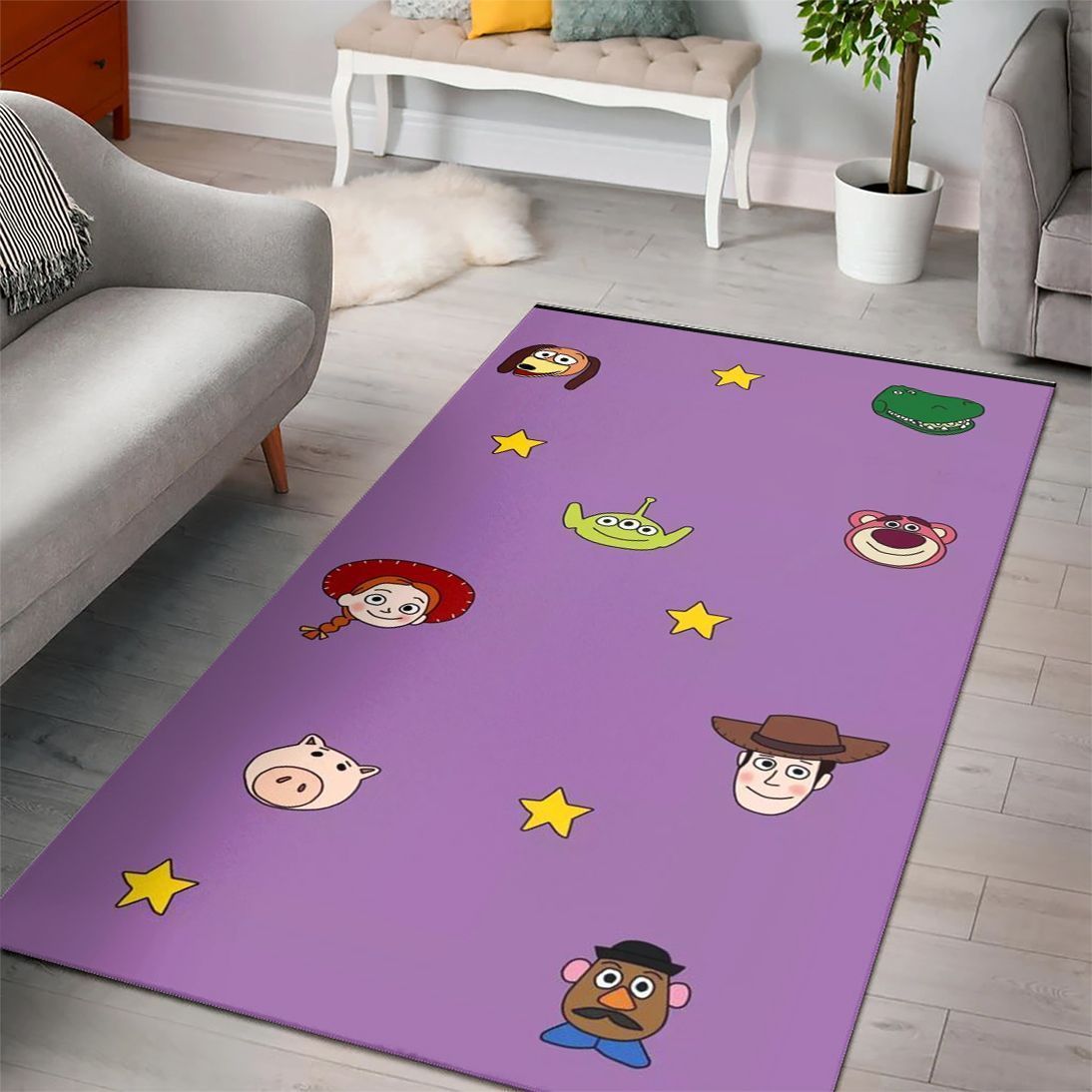 Purple and Yellow Toy Story Character Themed Kids Rug for Playroom